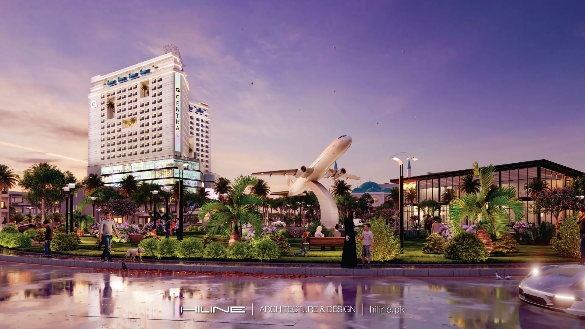 Q-Central Grand Mall & Residences in Bahria Orchard’s first skyscraper, designed by Hiline, stands 300 feet tall. This sleek and magnificent building combines modern and neoclassical designs for a stunning effect.