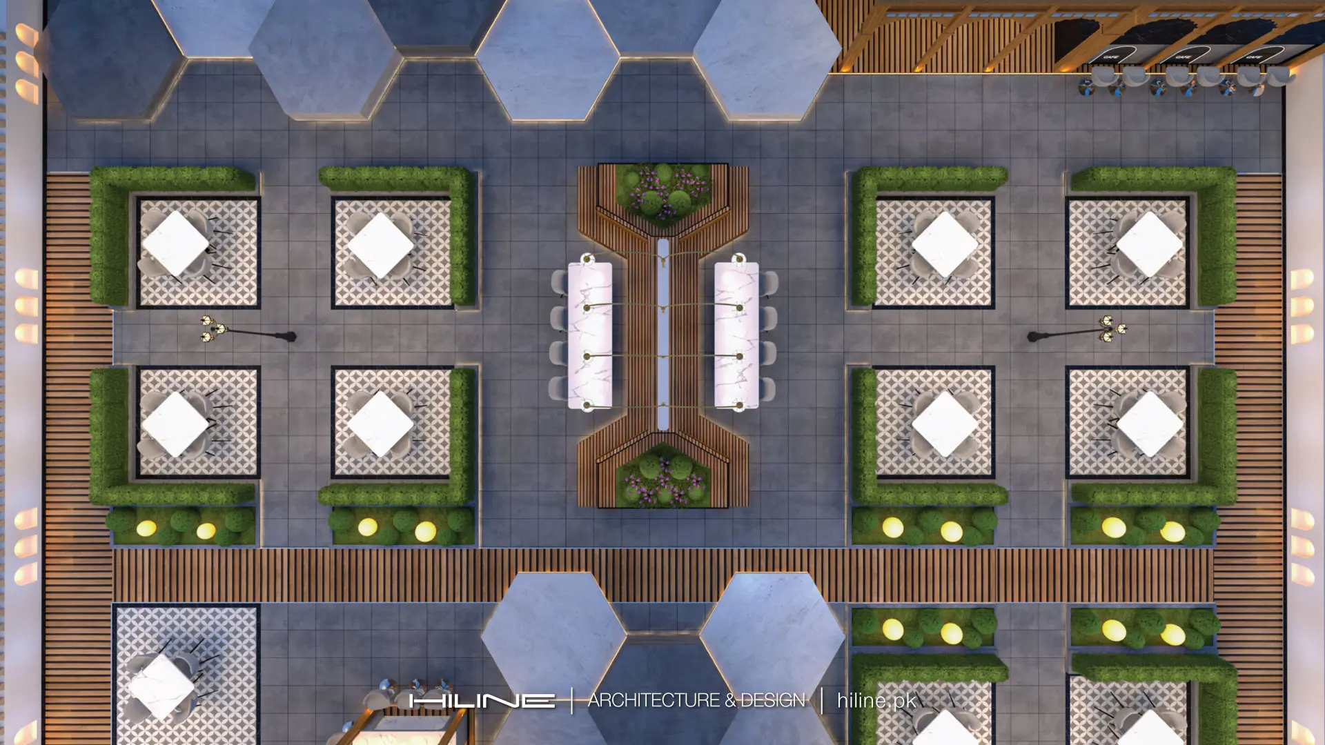 Developed a modern QourtYard dining space with a focus on comfort and style, incorporating contemporary design elements to create an inviting atmosphere.